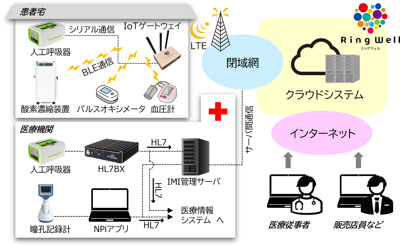 日本酸素ホールディングスグループの日本産業ガス事業会社である大陽日酸株式会社(本社:東京都品川区 代表取締役社長:永田 研二)と、グループ会社であり医療機器の輸入、販売、レンタル等を行うアイ・エム・アイ株式会社(代表取締役社長:林 健)は、医療機器の遠隔モニタリングシステム「RingWell(リングウェル)」を共同開発いたしました。本システムは、医療機器の運転状況や患者様の生体情報をリアルタイムで確認できるクラウド型プラットフォームであり、在宅医療では指導管理を行う医療従事者、機器の設置・点検・緊急対応を担う在宅サービスプロバイダ(販売店)に必要な情報の提供を可能にし、業務の効率化を支援するものです。 ニュースリリースPDF