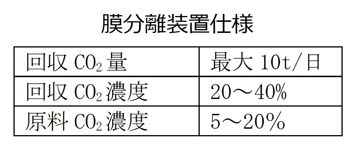 一方、東邦ガスは、ボイラ排ガスなどに含まれる低濃度のCO2 を20~40%の中濃度まで濃縮可能な膜分離装置(分離膜モジュールおよび周辺機器・前処理機器等)の開発を進めています。