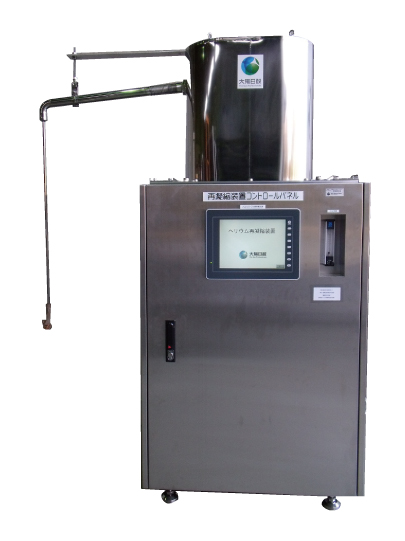 一方で、大陽日酸のヘリウム再凝縮装置は高い凝縮能力を持ち、ベッセルを用意することで再凝縮して余った液体ヘリウムを貯蔵しておくことが可能です。